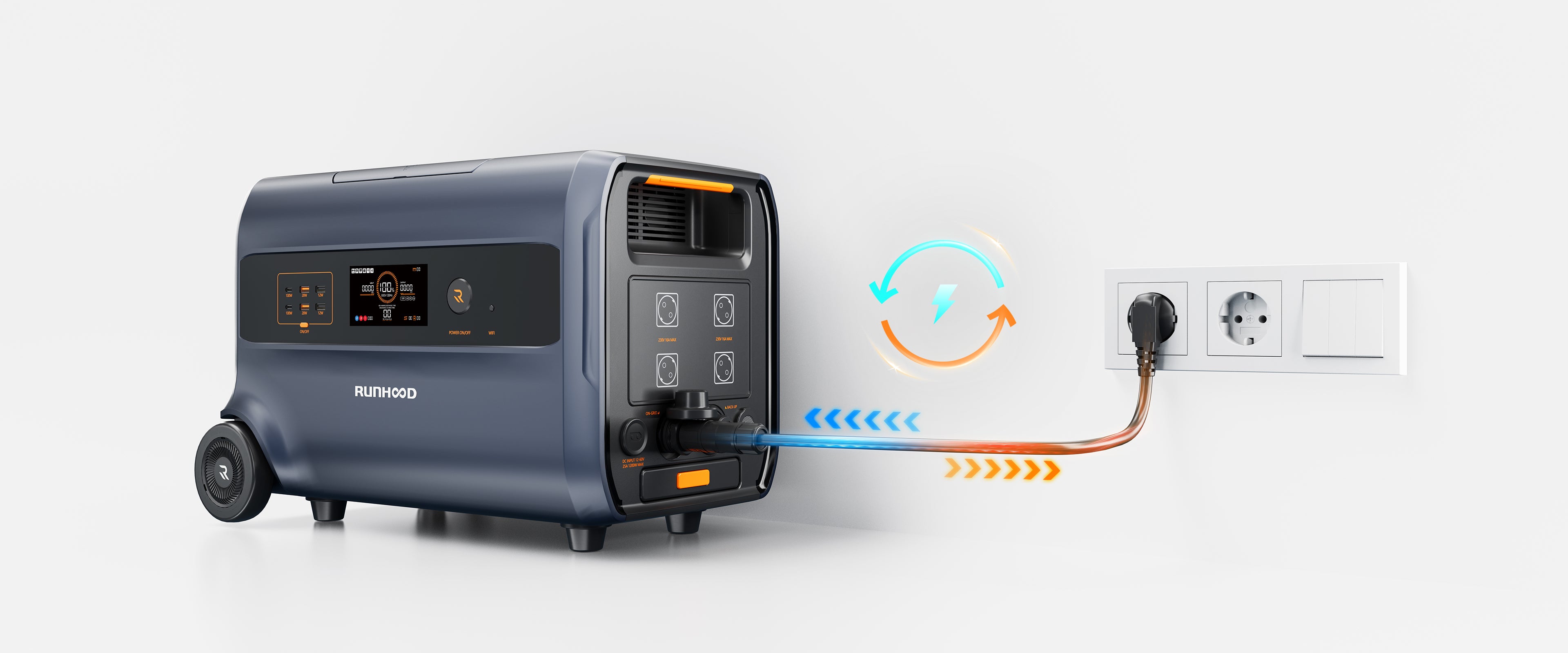L’algorithme intelligent de RUNHOOD utilise l’énergie solaire et le réseau pour recharger la batterie à 100 %. Idéal pour les coupures de courant ou une utilisation extérieure. En cas de panne, le F2400 passe en mode onduleur (UPS) en seulement 10 millisecondes pour assurer une alimentation continue.