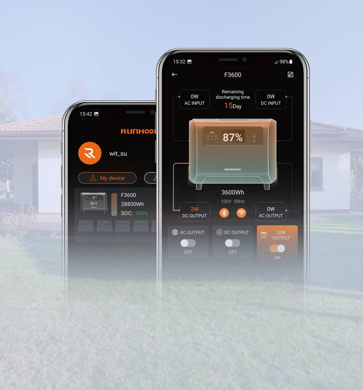 La conception modulaire et évolutive répond de manière flexible aux besoins énergétiques domestiques, allant de 3,6 kWh à 28,8 kWh. L'appareil peut être utilisé comme un système de stockage d’énergie pour la maison ou comme une source d’énergie mobile. Il suffit de débrancher l’unité principale pour une alimentation portable de 3600 watts/heure. Le boîtier de la batterie est toujours connecté à l’onduleur hybride et continue à servir de système de stockage à domicile.